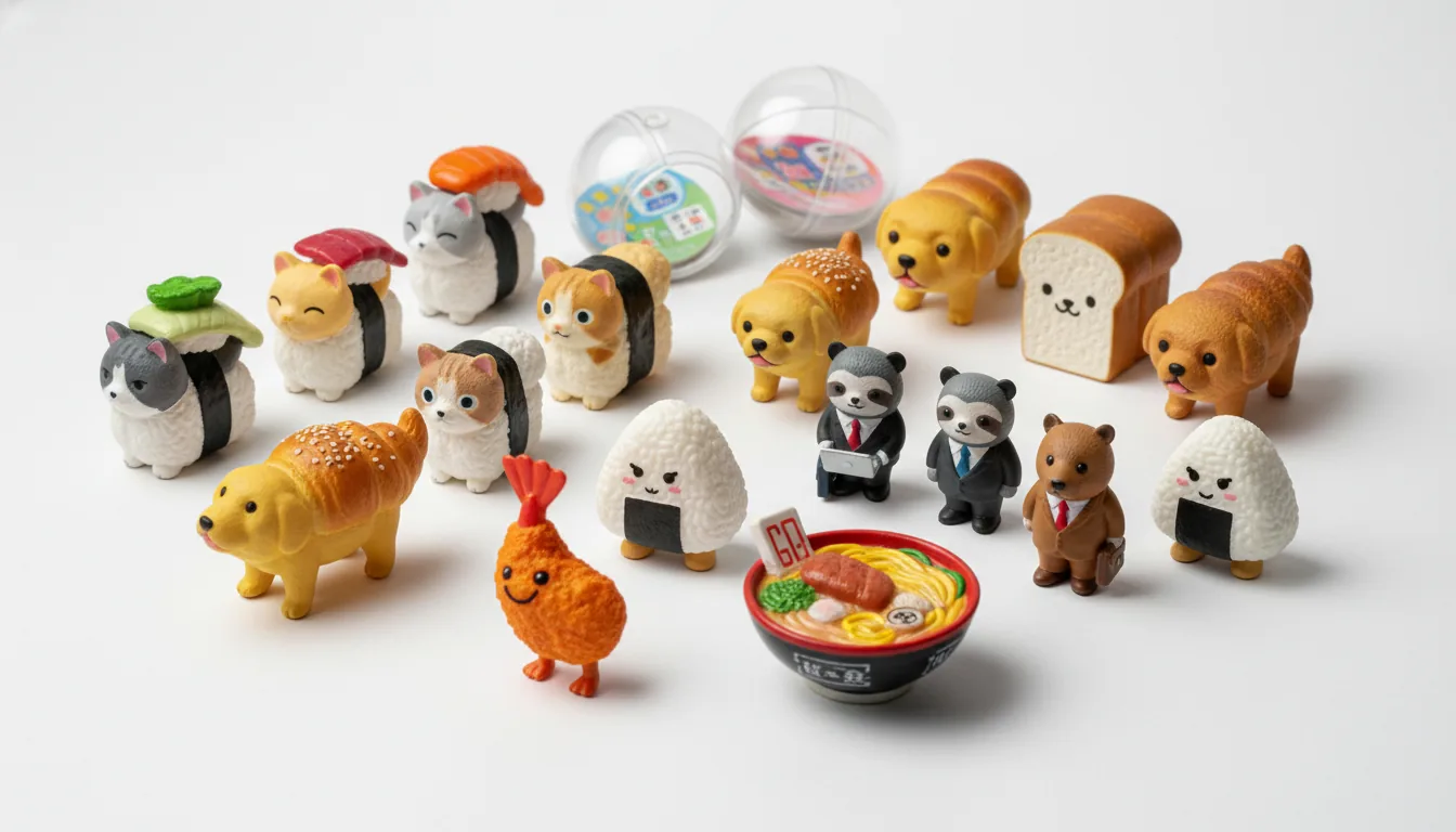 Manufacturing economics: Japan's gashapon manufacturing infrastructure — particularly Bandai, Kitan Club, Kaiyodo, and Megahouse — can produce short print runs economically. A weird concept doesn't need to sell 100,000 units to justify production. A niche series of 10,000 units that goes viral is more valuable to a manufacturer than 100,000 units of generic anime figures that generate no attention.